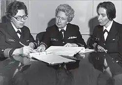 Conder as Director of the Nurse Corps, with future Directors Mary Nielubowicz (left) and Joan Engel. | |