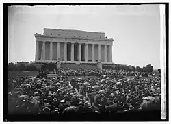 - ^ "Harding Dedicates Lincoln Memorial; Blue and Gray Join— President Moved by Presence of Veterans of Both Armies to Emphasize Unity". The New York Times. May 31, 1922. p. 1.