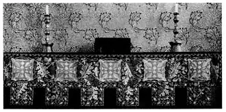 - ^ "The work is carried out with floss silk in bright colours and gold thread, both background and pattern being embroidered. The five crosses, that are placed at regular intervals between the vine leaves, are couched in gold passing upon a silvery silk ground." Christie, Grace (Mrs. Archibald H.): Embroidery and Tapestry Weaving, London, John Hogg, 1912; e-text at Project Gutenberg; notes to Plate XIII.