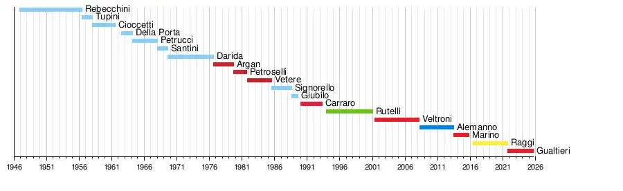 | Mayor of Rome | Took office | Left office | Party | Coalition | Election | ||||