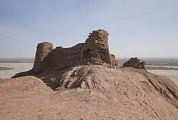 Mazar Tagh was part of the ancient Kingdom of Khotan during the first millennium AD. Before the Tibetan army built a fort there, it seems to have been a Buddhist pilgrimage site known locally as "the Hill".[2] During the Tibetan Empire, the fort at Mazar Tagh was the main Tibetan military outpost for the Khotan region, performing a similar role to the Tibetan fort at Miran. During the Tibetan occupation, Mazar Tagh, like Miran, was home not only to soldiers but also to their families, civilian officials, and merchants.[3] Aurel Stein wrote of the presence of an Islamic shrine on the hill at the time of his first visit in 1907, and noted modern Turkic name Mazar Tagh means "Hill of the Sacred Shrine".[4] The hill still contains a functioning Islamic shrine (Mazar).