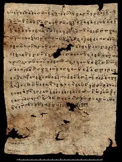 Mazar Tagh was excavated by Aurel Stein in 1907 during his second Central Asian expedition,[5] and again in 1913 during his third expedition.[6] The fort contained five rooms (i to v in Stein's discussions) and a watchtower, which is still partially standing. As well as excavating the fort, Stein discovered a large refuse heap on the north and northeast slopes of the hill, which contained hundreds of discarded Tibetan military documents on paper and wood. The British Library holds 1,168 wooden documents under the pressmark IOL Tib N, and 321 paper documents under the pressmark Or.150000, found in the fort itself as well as the rubbish heap. Stein also recovered fragments of Khotanese, Uyghur and Sogdian documents from the site.[5] Several of the Khotanese texts refer to the rule of the Tibetan "masters".[2] Stein also discovered other kinds of artefact, though in much smaller number, including arrows, sheathes, shoes, dice, a comb and a pen. These items are now at the British Museum under the pressmarks MAS.480 to MAS.509.