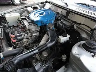 The VC is a 1.8 L (1,769 cc) overhead camshaft inline-four, with a bore and a stroke of 80 mm × 88 mm (3.15 in × 3.46 in). It was all new in 1975 (pre-1975 1.8 Couriers got the earlier, long-stroke VB engine) and has an alloy eight-valve head on an iron block. Output varied considerably depending on market and installation, in a 1981 UK-market B1800 it is 84 hp (63 kW; 85 PS) DIN at 5000 rpm and 13.7 kg⋅m (134 N⋅m; 99 lb⋅ft) at 2500 rpm.[1]