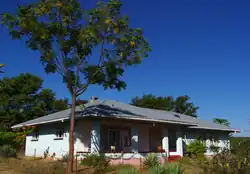 Nowadays there are quite a lot of buildings in the hospital compound, surrounded by a perimeter fence. The hospital consists of a female ward, paediatric ward, male ward, labour ward, outpatient department, operation room, dispensary, laboratory and kitchen. A TB ward is situated close to the entrance gate, and behind the female ward is a house where pregnant women live during the last month of their pregnancy. There are several houses for staff members. Within the compound there are also a school, a church and a manse (minister's house). Outside the gate is a small shop.