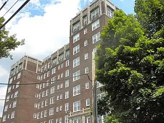 McCallum Manor is a historic apartment building located in the Mount Airy neighborhood of Philadelphia, Pennsylvania. It is located next to Malvern Hall. It was built in 1925, and is a nine-story, H-shaped, reinforced concrete building faced in brick in a Federal Revival-style. It features terra cotta decorative elements.[2]