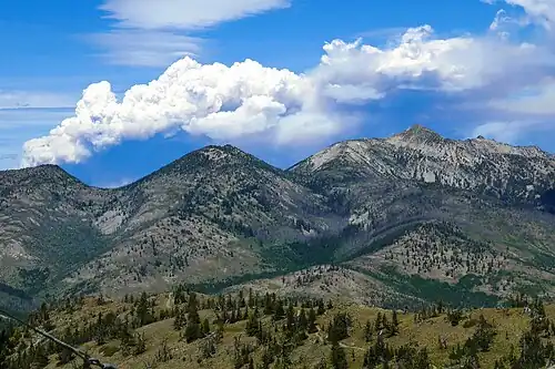 The peak was first climbed in 1904 by Edward Chester Barnard of the International Boundary Survey and used as a triangulation station.[3][5] The peak was originally called Goat Peak in 1916, changed to McLeod Peak in 1929, and revised to McLeod Mountain in 1978.[6] The mountain's name honors Methow Valley pioneer Angus Oliver McLeod (March 14, 1847 – July 12, 1928), and the toponym has been officially adopted by the United States Board on Geographic Names.[6] Angus had a hotel, bar, boarding house, and manned the post office for 15 years.[7] The mountain was the scene of a top priority wildfire in the nation in 2018.[8]