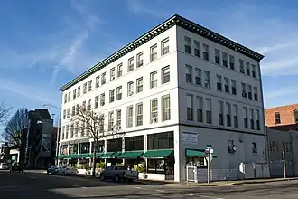 George H. McMorran and Carl G. Washburne became business partners, opening a dry goods store in 1909. The two had worked as store clerks for Samson H. Friendly in Eugene.[3] In 1913 McMorran and Washburne purchased and renovated the McClung building, adding two floors. McMorran and Washburne became Eugene's premiere dry goods store, and in 1927 the store outgrew its location and was moved to a new building at the corner of Broadway and Willamette.[1][4][5][6]