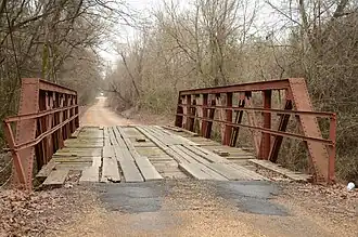 The McNeely Creek Bridge is a historic bridge spanning McNeely Creek just outside Beirne, Arkansas, a village in southwestern Clark County. The bridge, a steel Warren pony truss bridge with a span of 71 feet (22 m), carries County Route 12. Built in 1923, it has a wooden deck 18 feet (5.5 m) wide.[2]