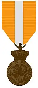 The Medal of Recognition 1940–1945 (Dutch: Erkentelijkheidsmedaille 1940–1945) was a medal of the Kingdom of the Netherlands that was established by Royal Decree on 9 February 1946. The decoration was of two classes, silver and bronze, and was awarded to those who aided the Dutch during the period of World War II, or afterwards helped relieve those who had suffered from the German occupation.