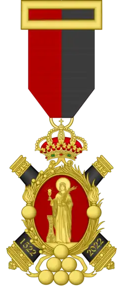 - ^ "Art. 5 y Anexo I del Decreto de Creación de la Medalla Conmemorativa del Quinto Centenario de la Proclamación de Santa Bárbara como Patrona del Arma de Artillería" (PDF). Boletín Oficial del Arzobispado Castrense de España. 4 December 2021.
