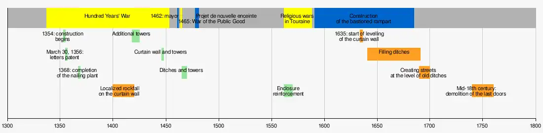 In 1999, Bernard Chevalier provided a detailed account of the chronology and political interpretation of the modifications made to the enclosure in the 15th century in a chapter of the book Les Enceintes urbaines (XIIIe et XVIe siècles).[40]