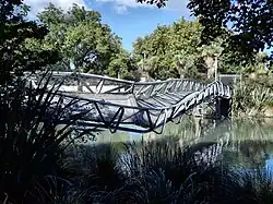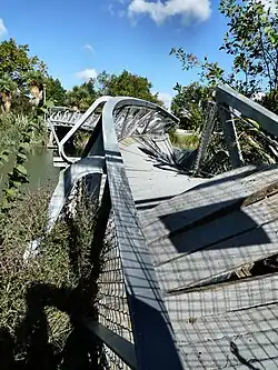 The Medway Street footbridge crosses the Avon River / Ōtākaro, connecting the Christchurch, New Zealand, suburbs of Richmond and Avonside.[1] The original bridge became twisted in the 2010 Canterbury earthquake, leading to its removal in 2013. Part of the structure was placed on the river bank in October 2018 to serve as a memorial. In 2022, a new bridge was opened just to the south of the old bridge.