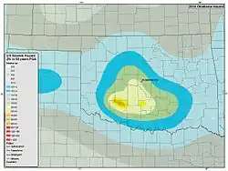 - ^ a b c d e f g h Crone, A.J. (1994). "Fault number 1031b, Meers fault, southeastern section". Quaternary fault and fold database of the United States. United States Geological Survey. Retrieved 16 June 2019.