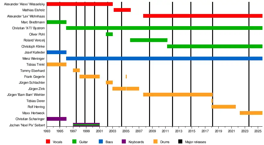| Past members | Alexander "Alexx" Wesselsky Noel Pix Marc Bredtmann Josef Kalleder Tobias Trinkl Christian Scharinger Mathias "Jablonski" Elsholz Oliver Pohl Jürgen Zink Frank Gegerle Roland Vencelj Jürgen "Bam Bam" Wiehler Rolf Herring |