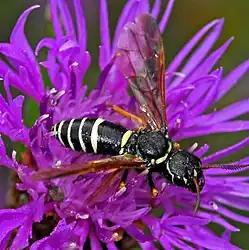 Adults can be found from May to July, mainly on white and yellow inflorescences.[4] They feed on pollen, nectar and honeydew, while young larvae feed gregariously on a few flowering plants (Laserpitium, Seseli and Peucedanum species).[3][4][5]