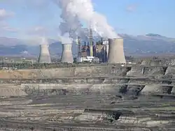 Megalopoli retained a rural character until the early 1960s, when with the help of Megalopoli-born Prof. Leonidas Zervas (then Minister of Industry) the Greek Public Power Corporation started mining lignite in the Megalopoli Mine and the construction of the Megalopoli Power Plant followed soon.[10] The Megalopoli Mine is one of the largest lignite mines in Greece.[4] The town was struck by the massive Arcadia earthquake of 5 April 1965, in which 17 inhabitants died and 80% of residences were demolished or rendered uninhabitable.