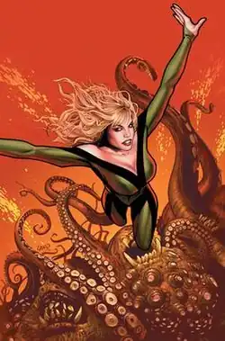 Meggan Puceanu[1] is a fictional superhero appearing in American comic books published by Marvel Comics, usually as a supporting character in stories featuring Captain Britain, and the X-Men. A mutant empath and shapeshifting elemental, she was created by writer Alan Moore and artist Alan Davis, and first appeared in Mighty World of Marvel #7 (Dec. 1983), which was published in the United Kingdom by Marvel's British publication arm, Marvel UK.[2] Her first appearance in an American Marvel publication was in The New Mutants Annual #2 (1986). She eventually chose the codename Gloriana, a name of victory coined by the demons of Hell.[3]