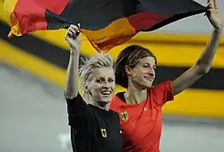 She improved the following year, clearing 1.92 metres in two indoor meets (in January in Cottbus and February in Leipzig) and then 1.93 metres outdoor, in July in Ulm.[2] She also began competing at an international senior level and took part in two major competitions: the 2009 European Athletics Indoor Championships, where she recorded a jump of 1.85 metres in the qualifiers, and 2009 World Championships in Athletics (which were held in her home city of Berlin). At the World Championships, she jumped close to a personal best in the qualifiers (1.92 m) and reached the high jump final. She did not improve on this, however, and finished in eleventh place having only cleared 1.87 m.