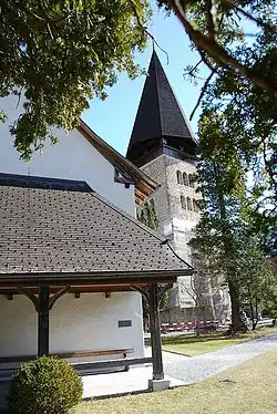 Meiringen is first mentioned in 1234 as Magiringin. Due to its strategic location at the foot of several alpine passes, the area around Meiringen was settled at least in the Early Middle Ages. The first village church was built in the 9th or 10th century. When it was destroyed in a flood the new church of St. Michael (first mentioned in 1234) was built about 5 m (16 ft) above the old church. The current church of St. Michael dates from the 15th century and was renovated in 1683–84. The Restiturm castle was constructed in the 13th century, whilst the Wyghus fortress in the Brünig Pass was first mentioned in 1333, though it was destroyed later.[10]