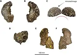 Unnamed species are also known for the genus Quinkana, notably in the form of the Ongeva Quinkana from Alcoota.[15] The "Floraville taxon", meanwhile, may represent a separate genus of ziphodont mekosuchine rather than another Quinkana species.[28] Ziphodont crocodilian teeth have also been recovered from Australia's Mount Etna Caves National Park.[33][34]