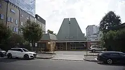 With the smaller congregation and departure of its more generous supporters, maintenance of the old building in Cathedral Place became insupportable, and in 1964 James's congregation built the Melbourne Unitarian Peace Memorial Church at 110 Grey Street, East Melbourne,[26] 37°48′40″S 144°59′06″E / 37.8112°S 144.9849°E opposite Mercy Hospital.