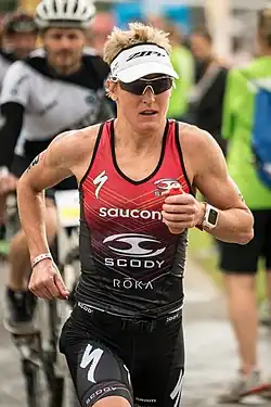 Melissa Hauschildt (née Rollison, born 13 April 1983 in Adelaide) is an Australian professional triathlete and former middle-distance runner. She is a 3-time World Champion, winning Gold at the 2011 and 2013 Ironman 70.3 World Championship as well as the 2013 ITU Long Distance Triathlon World Championships.[1][2] She also won Silver at the 2016 Ironman 70.3 World Championships. In April 2018, Hauschildt set a new Ironman brand record of 8:31:05,[3][4] at the Ironman North American Championships, breaking the previous record of 8:33:56 set by Chrissie Wellington in 2011.