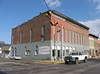 Melodeon Hall is a historic meeting hall and theatre building located at Rushville, Rush County, Indiana. It was built in 1872, and is a two-story, Late Victorian style brick building. The Melodeon Hall is located on the second floor and measures 58 feet wide by 42 feet long. The lower-level houses three shops.[2]: 2