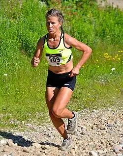 In 2000, she made a failed attempt to make the U. S. Olympic team in the marathon, then disappeared from the scene. At age 37, she decided to give it one more go, training for the 2012 Olympic Trials. While failing to reach that lofty goal, she did finish 8th at the 2012 World Mountain Running Championships and winning the 2010 women's division of the Transrockies Run - the running version of the Transrockies race.[2][7]