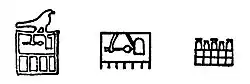 Two documents have been put forward as proof either Narmer or Hor-Aha was Menes. The first is the "Naqada Label" found at the site of Naqada, in the tomb of Queen Neithhotep, often assumed to have been the mother of Horus Aha.[17] The label shows a serekh of Hor-Aha next to an enclosure inside of which are symbols that have been interpreted by some scholars as the name "Menes". The second is the seal impression from Abydos that alternates between a serekh of Narmer and the chessboard symbol, "mn", which is interpreted as an abbreviation of Menes. Inconclusive arguments have been made with regard to each of these documents in favour of Narmer or Hor-Aha being Menes.[b]