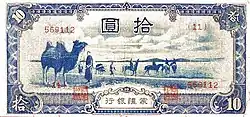 It was thus one of the "puppet" banks of issue established by the Japanese occupation forces, together with the Central Bank of Manchou (1932-1945), United Reserve Bank (1938-1945), Huaxing Commercial Bank (1938-1941) and Central Reserve Bank (1941-1945).[1]: 6