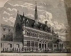 The school was founded in 1561[1] by Thomas White of the Merchant Taylors' Company in a manor house in the parish of St Lawrence Pountney in the City of London, where it remained until 1875.