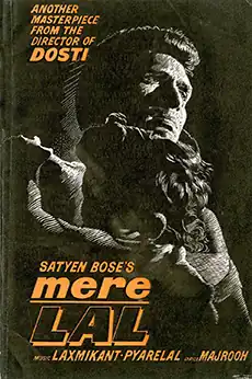 Mere Lal (transl. My Son) is a 1966 Indian Hindi-language drama film directed by Satyen Bose and produced by Jyotsna Sen. It is a remake of the 1963 Bengali film Badshah, based on the story of Nihar Ranjan Gupta. The film stars Dev Kumar, Indrani Mukherjee and Mala Sinha. It focuses on a stone-hearted dacoit who, when thrust with the responsibility of bringing up a lost child he finds on a riverbank, mends his ways and becomes an honest wage-earner.