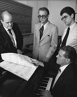 The International Viola Congress commissioned him to write a viola concerto, Homages, in 1979 in honor of William Primrose.[46] Jun Takahira premiered the work in 1980, with David Dalton directing the U.S. Air Force Orchestra.[47]