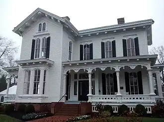 Merrimon-Wynne House, also known as the Merrimon House and Wynne Hall, is a historic home located at Raleigh, Wake County, North Carolina. The house was built about 1875, and is a two-story, four-bay, Italianate style frame dwelling with a cross-gabled roof and somewhat irregular massing. It is sheathed in weatherboard and features a Stick Style / Eastlake movement front porch with abundant ornamentation. The house was remodeled and complementary bay windows added about 1910. The house was built by Senator Augustus Summerfield Merrimon (1830-1892).[3]