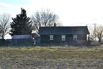The Merritt Fry Farm is a historic farm located west of Jerome, Idaho, United States. The farm includes three stone buildings: a house, a bunkhouse, and a barn. The house and bunkhouse were built by prominent Jerome stone mason H. T. Pugh and illustrate his ability to match stones, join them with mortar, and use concrete for decoration. Farmer Merritt Fry had the bunkhouse built in 1916; it served as his temporary home until he could build a more permanent house. While farmers frequently built temporary farmhouses, Fry's is unusual in that it uses stone rather than a less sturdy material. The barn followed the bunkhouse in 1926, and Fry's permanent farmhouse was completed in 1930.[2]