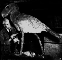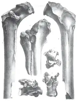 Mesembriornis was first described by Argentine paleontologist Francisco Moreno during the "Argentine Bone Wars" between him and Florentino Ameghino in 1889 based on a cervical vertebral centrum along with the proximal section of a right tibiotarsus and fibula (MLP-140-142), the species name being Mesembriornis milneedwardsi.[3] The genus name, Mesembriornis, means "southern bird" after its discovery in the southern Argentina, while the specific name is after French paleontologist Alphonse Milne-Edwards.[4] In the same paper, Moreno erected a new genus and species of what he thought to be a fossil stork, Paleociconia australis, based on a distal left tarsometatarsus.[3][1] This species has since been synonymized with Mesembriornis milneedwardsi, and Moreno also unknowingly assigned a femur of M. milneedwardsi to another one of his taxa, Driornis pampeanus.[1] All of the fossils were collected from the Monte Hermoso Formation strata of the town of Monte Hermoso in Buenos Aires Province, Argentina.[1][5] 2 years later in 1891, Moreno and his colleague Alcides Mercerart described two more Mesembriornis species that are now seen as synonymous with the large Phorusrhacid Phorusrhacos, the species being Mesembriornis studeri and Mesembriornis quatrefragesi, the former species' type specimen notably included skull and mandible material.[5][1][3]