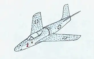 Jet-powered interceptor. It was a conventional looking design with the turbojet air intakes located on the fuselage sides. Its armament was three MK 108 cannons located in the nose, as in the following variant.