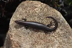Carinascincus metallicus, the metallic cool-skink or metallic skink[2] is a species of skink in the family Scincidae. It is endemic to Australia, found in southern Victoria, as well as in Tasmania where it is the most widespread and common lizard, occurring on many offshore islands in Bass Strait as well as the mainland. It gives birth to live young. It is highly variable in colour and pattern, and may be a complex of closely related species.[3][4]