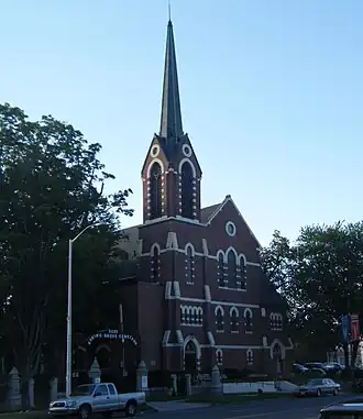 The Metropolitan African Methodist Episcopal Zion Church (also known as North Methodist Episcopal Church) is a historic Methodist Episcopal Church at 2051 Main Street in Hartford, Connecticut. This High Victorian Gothic structure was built in 1873-74 for an Episcopal congregation, and has since 1926 been the home to the city's oldest African-American congregation, which was established in 1833.[2] The church was listed on the National Register of Historic Places in 1994.[1]