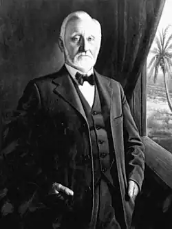 Miami Beach then initiated the planting of a coconut plantation along its shore in the 1880s, led by New Jersey entrepreneurs Ezra Osborn and Elnathan T. Field, but the venture failed.[12] One of the investors in the project was agriculturist John S. Collins, who achieved success by buying out other partners and planting different crops, notably avocados, on the land that would later become Miami Beach. In fact, the pine trees on today's Pinetree Drive served as an erosion buffer for Collins' plantations.[13] Meanwhile, across Biscayne Bay, the City of Miami was established in 1896 with the arrival of the railroad and developed further as a port when the shipping channel of Government Cut was created in 1905, cutting off Fisher Island from the south end of the Miami Beach peninsula.