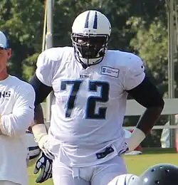 On March 14, 2014, Oher signed a four-year, $20 million contract with the Tennessee Titans.[29] Oher started eleven games for the Titans, but he was placed on injured reserve on December 13 after missing the previous two games due to a toe injury. Pro Football Focus graded Oher as the 74th best tackle out of 78 for the 2014 season.[30] The Titans released Oher on February 5, 2015.[31]