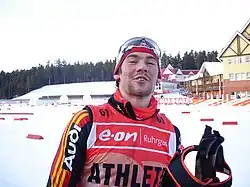 He is the son of the former biathlete Eberhard Rösch. He was junior world champion four times, three times in the relay and once in the sprint distance in 2003. On 16 December 2005 Rösch took his first official world cup podium with a second in the 10 km sprint, and on 15 January 2006 he won his first world cup victory in Ruhpolding when he beat Raphaël Poirée. In 2006, he won an Olympic gold medal with the German team in the relay. In addition, Rösch finished fifth in the overall standings in the 2005–06 Biathlon World Cup.[1] He also took three World Championship bronze medals in relays and two race wins in the Biathlon World Cup.[2]