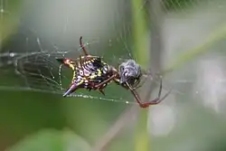 Micrathena sagittata and web, Gadsden Co. Florida.
