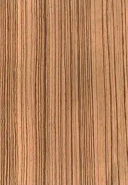 Microberlinia bisulcata is a lowland rainforest tree in the family Fabaceae, a species that is found only in Cameroon. It is threatened by habitat destruction and exploitation. Common names include African zebrawood, tigerwood, zebrano and zingana.[2]