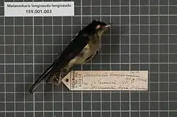 - ^ BirdLife International (2017). "Melanocharis longicauda". IUCN Red List of Threatened Species. 2017: e.T22718140A118815524. doi:10.2305/IUCN.UK.2017-3.RLTS.T22718140A118815524.en. Retrieved 12 November 2021.