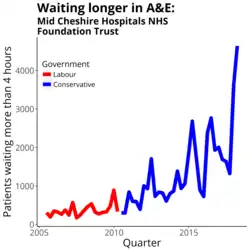 - ^ "All inspections: Mid Cheshire Hospitals NHS Foundation Trust - Care Quality Commission". www.cqc.org.uk. Retrieved 13 May 2023.