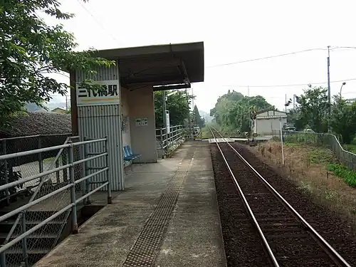 Midaibashi Station (三代橋駅, Midaibashi-eki; みだいばしえき) is a passenger train station located in the city of Arita, Saga Prefecture, Japan.[1] It is on the Nishi-Kyūshū Line[2] which is operated by the third-sector Matsuura Railway since 1988.