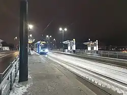 Middelalderparken is a tram stop on the Ekeberg Line of the Oslo Tramway. It is served by lines 13 and 19. It was opened on 4 October 2020.[1][2] It is between Bjørvika and Oslo Hospital. It is located at the intersection at Bispegata and Trelastgata. It is located near the former tram stop called 'St Halvards plass'.