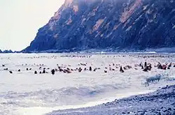 A World War II-era American transport ship beached on the island in 1942 where the wreck is still intact. The island was briefly home to Middleton Island Air Force Station, an early warning radar station, from 1958 until the station's closure in 1963.[6][7] During the 1964 Alaska earthquake the island rose an additional 12 feet (3.7 m) above sea level expanding its acreage by about 45%.[8]