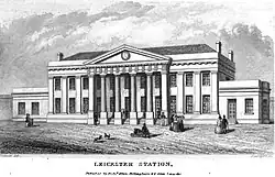 Initially the railway ran into a temporary platform at Derby, but at Nottingham a magnificent terminus had been built in Carrington Street.[12] The inaugural run took place from Nottingham on 30 May 1839,[13] with a timetabled public service beginning on 4 June.[14]